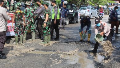 Kodim 0314/Inhil Gagas Gerakan Peduli Jalan Rusak Bersama Polres dan PSMTI Serta PUPR