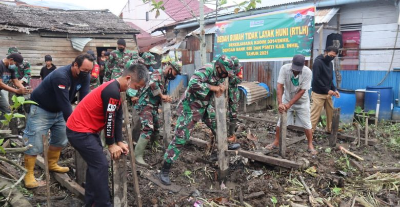 Kodim Inhil Beserta PSMTI dan Kelurahan Gelar Program Bedah Rumah Warga (RTLH)