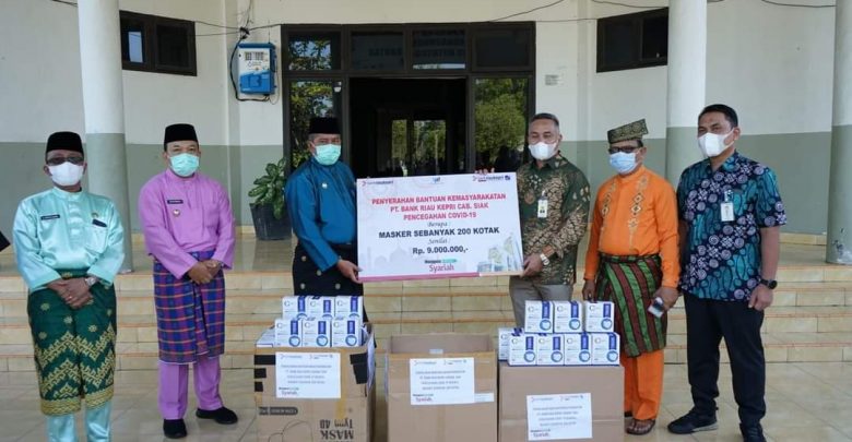 Pemkab Siak Terima Bantuan 200 Kotak Masker Dari PT Bank Riau Kepri Cabang Siak