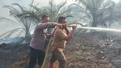 Polsek Bunut Resort Pelalawan Lakukan Pendinginan di Lahan Terbakar