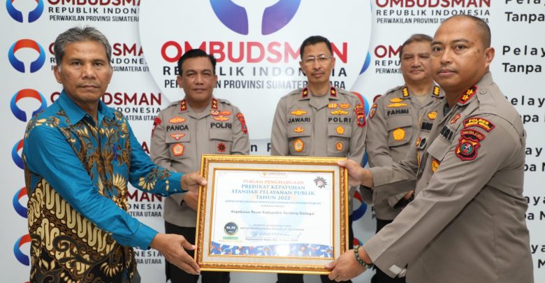Kapolres Serdang Bedagai menerima penghargaan dari Ombudsman RI disaksikan oleh Kapolda Sumut