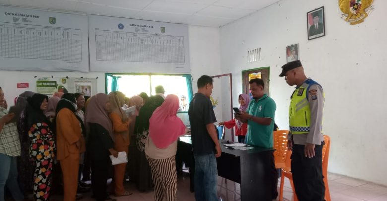 Personil Polsek Sipispis Patroli & Monit Pembagian BLT Sembako di Kantor Desa Marjanji