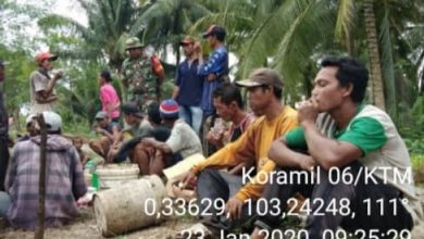 Polsek Singkep Barat Bersama Warga Tebang Pohon Rawan Tumbang Demi Keselamatan Pengguna Jalan