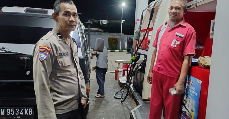 Personil Polsek Kuantan Tengah Patroli Antisipasi Praktik Kecurangan di SPBU Sungai Jering