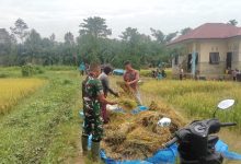 Panen Padi Musim Ini, Babinsa Turun ke Sawah Beri Dukungan kepada Petani Dayah Seuping