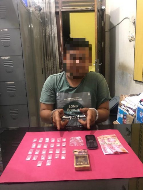 Dari tangan pelaku berhasil diamankan barang bukti berupa 26 Paket diduga Narkotika jenis Shabu yang dibungkus dengan plastic klip putih bening, (Bruto 5.71 Gram), 1 buah plastik bungkus rokok 1 buah kotak rokok Gudang Garam Surya, 1 Unit Hp Merk Strawberry, Uang Tunai Sejumlah Rp. 200.000.