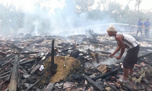 “Api merembet dari meteran listrik. Ada tiga rumah yang terbakar, perabotan rumah, uang 15 juta dan kabing 6 ekor ikut terbakar,” ucap Suwito