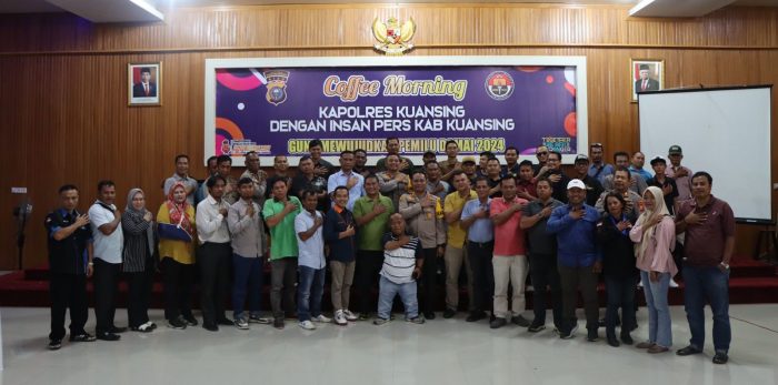Kapolres Kuansing, AKBP Pangucap Priyo Soegito, S.I.K, M.H., menyampaikan, “Coffee Morning ini menjadi kesempatan yang baik untuk memperat silaturahmi serta meningkatkan sinergitas antara Polres Kuansing dengan rekan-rekan media di Kabupaten Kuansing untuk menjalin komunikasi yang baik semua pihak guna terwujudnya Pemilu Serentak Tahun 2024 mendatang berjalan baik, aman dan kondusif,”