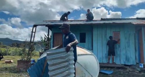 KARIMUNTODAY.COM, PEGUNUNGAN BINTANG – Wujud nyata kehadiran TNI sebagai pelayan rakyat kembali ditunjukkan oleh prajurit Satgas Pamtas RI–PNG Yonif 751/Vira Jaya Sakti (VJS) dari Pos Kalomdol melalui aksi renovasi rumah warga di wilayah perbatasan. Kali ini, rumah milik Bapak Amos Wurapka, warga Distrik Kalomdol, menjadi sasaran kegiatan sosial yang dilaksanakan secara bergotong-royong pada Rabu (17/9/2025).