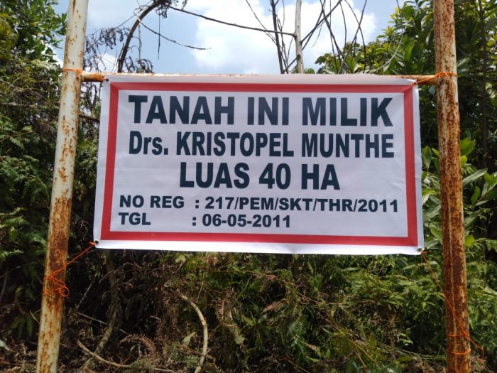 “Masyarakat Rantau Bertuah telah mengajukan izin kerjasama dengan PT Arara Abadi terhadap penghijauan areal Buffer Zone PT AA yang saat ini dalam keadaan semak belukar, namun setelah kegiatan berlangsung dalam rangka untuk memulai penanaman, ada pihak lain yang menuntut bahwa diareal Buffer Zone itu telah dikeluarkan surat kepemilikan pribadi oleh Pemerintah Desa Kota Garo, Kecamatan Tapung Hilir, Kabupaten Kampar, Riau, atas nama Dr Kristopel Munthe dengan nomor Registrasi : 217/PEM/SKT/THR/2011 Tanggal 06-05-2011. Seluas 40 Hektare,” ungkapnya.