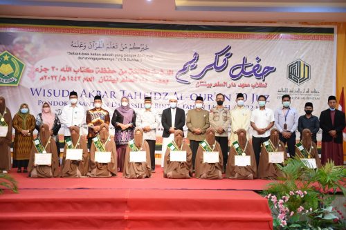 Yang mana, dalam wisuda Tahfidz ini sebanyak 30 orang santri yang terdiri dari 13 santri putra dan 17 santri putri berhasil menghafalkan Al-Qur’an 30 Juz.