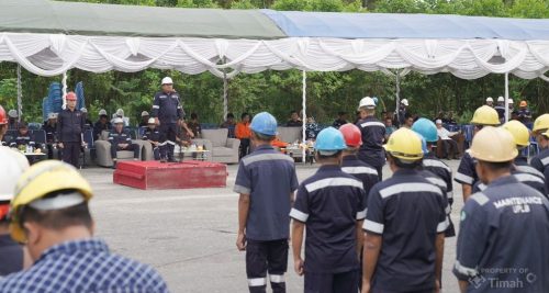 Apel yang dipimpin oleh Division Head Area Bangka Utara, Benny Pahala Hutahean membacakan sambutan Menteri Ketenagakerjaan yang menyampaikan tentang pesan keselamatan kerja merupakan tanggung jawab bersama yang menjadi prioritas utama dalam setiap aktivitas pertambangan.