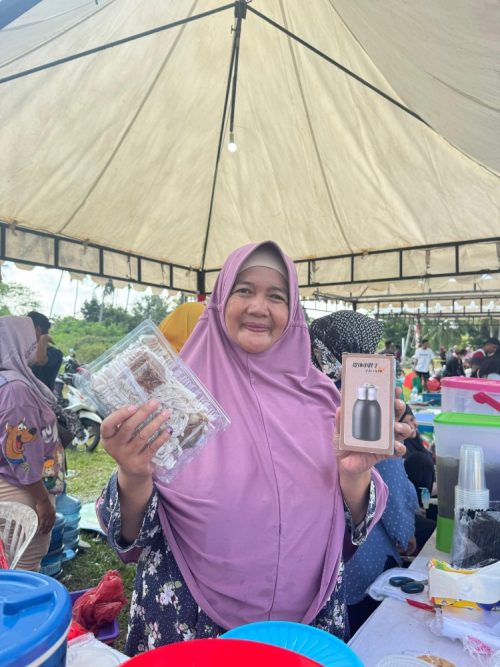 “Alhamdulillah kami sangat terbantu apalagi tenda dan meja ini disiapin gratis. Kami benar-benar dibantu untuk jualan. Terus ini ramai sekali dan penjualan juga lumayan,” katanya.