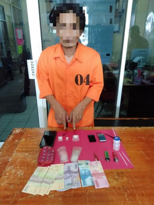 Barsama pelaku turut diamankan barang bukit 2 (Dua) paket sedang di duga Narkotika jenis sabu, 1 paket kecil di duga Narkotika jenis sabu, 1 buah timbangan digital warna hitam, Uang Tunai sebanyak Rp.215.000, 1 Unit Hp merk Vivo warna hitam yang di gunakan pelaku dan barang bukti lainnya.