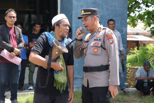 Tampak keakraban massa dengan Polri di lokasi kerana aksi pengangaman dilakukan dengan humanis.