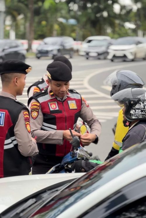 Sebanyak 134 personel Ditsamapta Polda Kepri dikerahkan untuk membagikan 100 bendera merah putih ukuran kecil (20×10 cm) kepada pengendara sepeda motor dan komunitas ojek online.