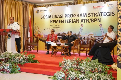 KARIMUNTODAY.COM, ASAHAN – Wakil Bupati Asahan Taufik Zainal Abidin S. Sos, M. Si menghadiri Sosialisasi Program Strategis Kementerian ATR/BPN di Hotel Marina Kabupaten Asahan, Rabu (07/06/2023). Tampak hadir Ketua Komisi II DPR RI, Mewakili DPR Pusat, Kanwil BPN Provinsi Sumatera Utara, Kepala Kantor Pertanahan Kabupaten Asahan, Lurah, Ketua Apdesi dan Kepala Desa.