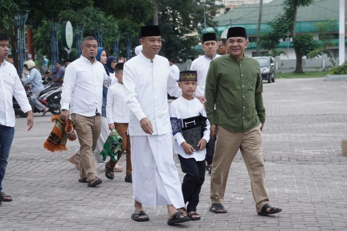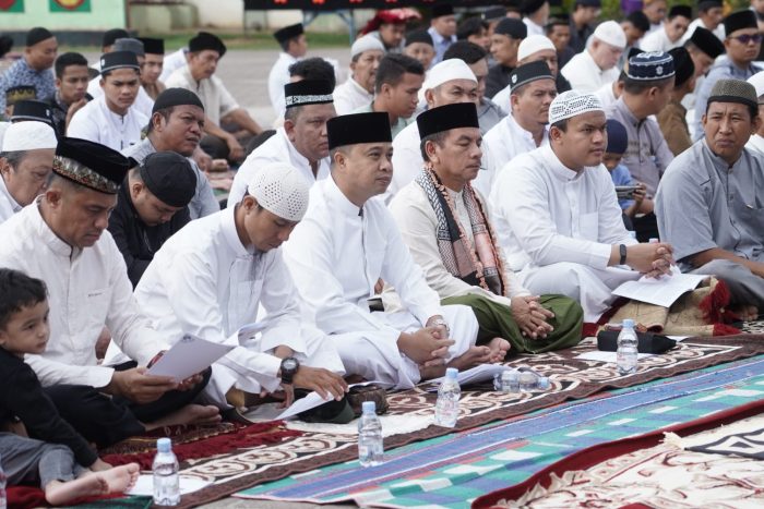 KARIMUNTODAY.COM, TEBINGTINGGI – Penjabat (Pj) Wali Kota Tebingtinggi, Dr. Moettaqien Hasrimi, S.STP, M.Si, didampingi Pj. Ketua TP PKK Kota Tebingtinggi, dr. Dara Caprina, dan keluarga melaksanakan sholat Idul Adha 1445 di Lapangan Merdeka, Kota Tebingtinggi – Sumut, Senin(17/06/2024).