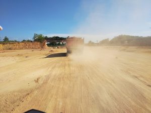 “ Itu truk pengangkut tanah urug untuk menimbun lahan di PT GRM, sangat disesalkan tidak menggunakan terpal untuk menutup tanah yang di bawa, akibatnya tanah tersebut akan berceceran di ruas jalan serta menimbulkan debu,” Tukasnya
