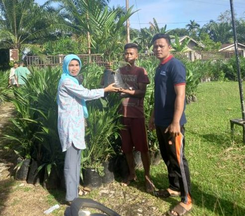 “Kita ingin masyarakat memanfaatkan lahan ganggur di tanami kelapa sawit, dan alhamdulilah masyarakat antuasias dengan bantuan bibit sawit gratis ini” ujarnya